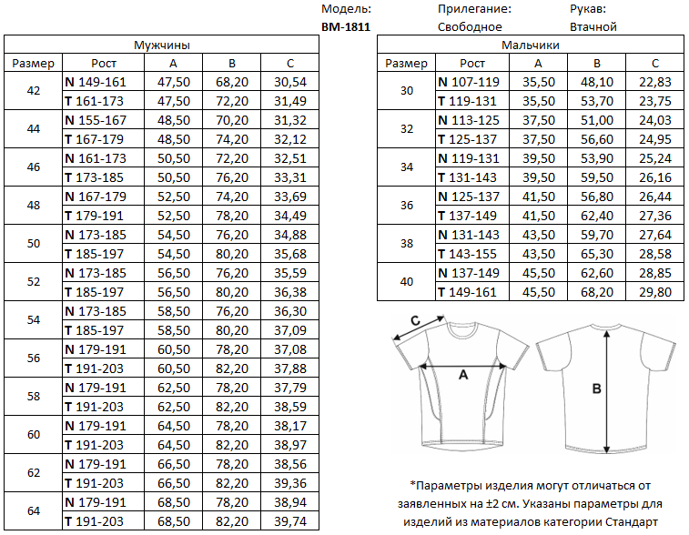 Таблица соответствия размеров и роста для мужчин